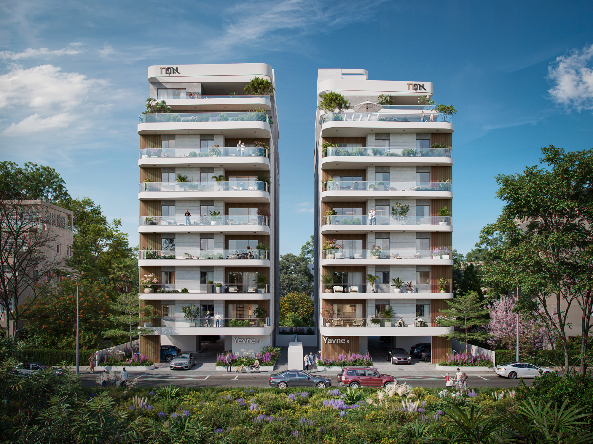 הפרויקט ברחוב יבנה 8-10 בקריית מוצקין משתרע על שני מגרשים וכולל שני בניינים.