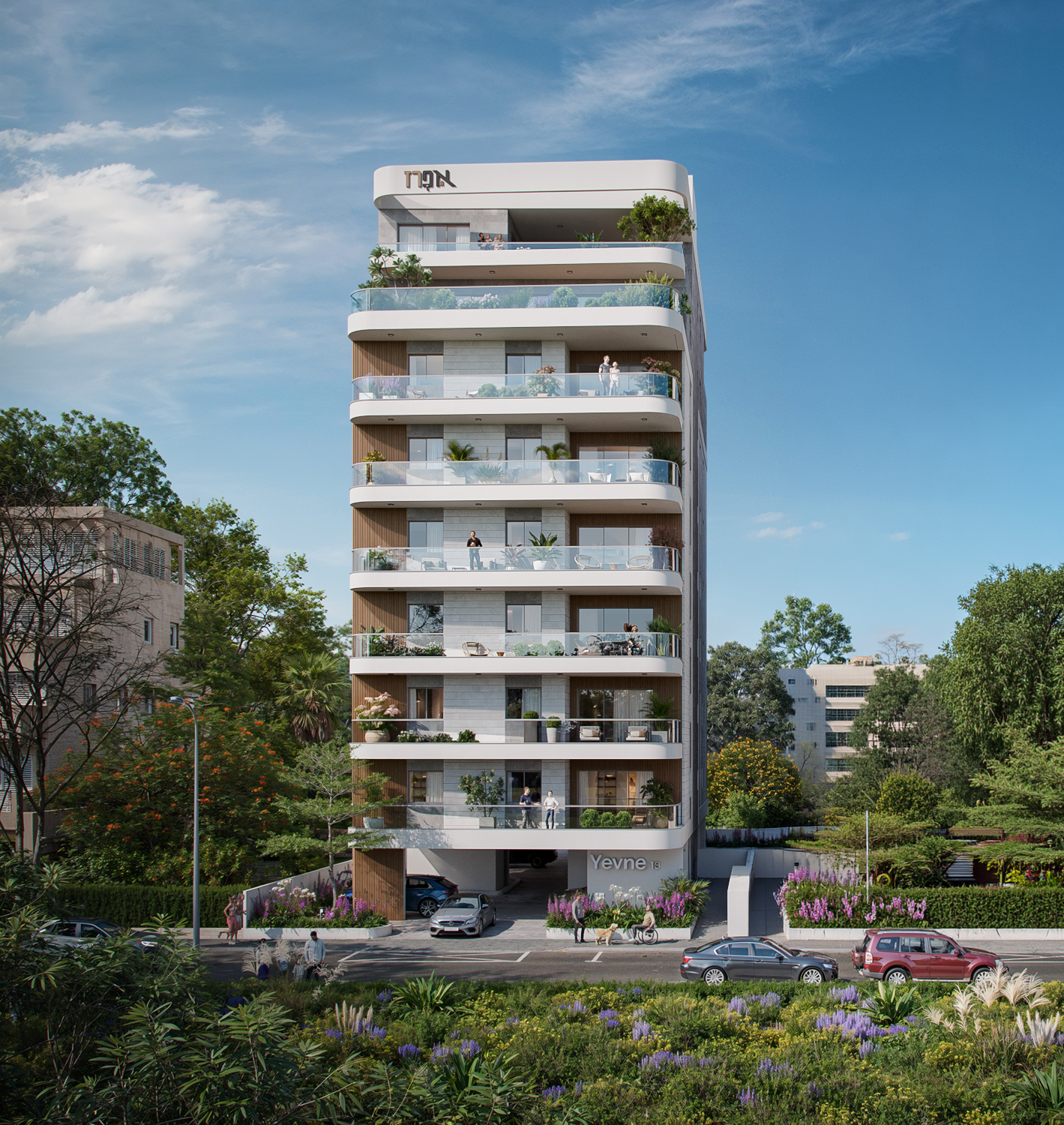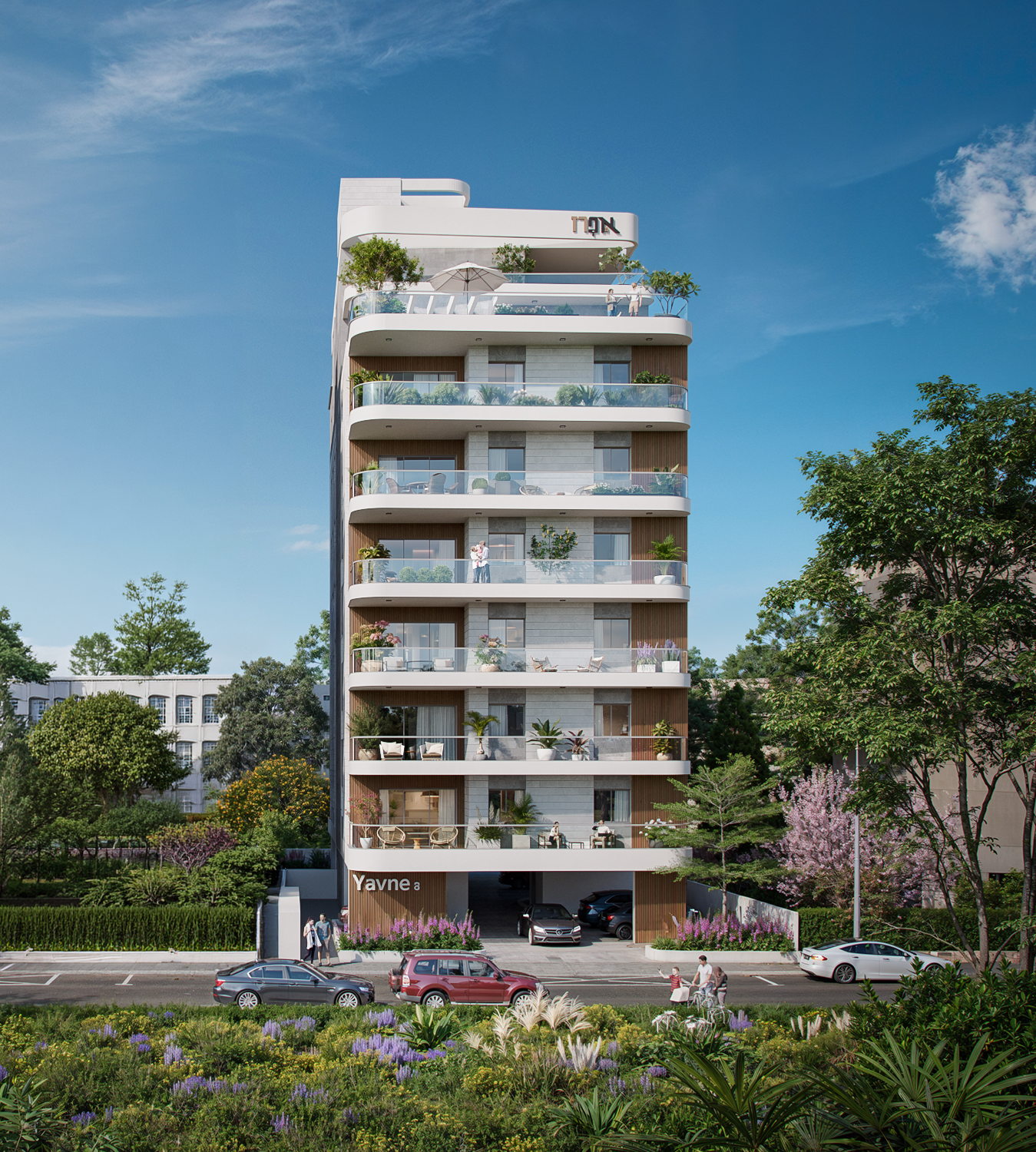 החזיתות נקיות ומודרניות, עם דגש על דירות מוארות ונוחות, שמציעות איכות חיים גבוהה ושפה אדריכלית ברורה.